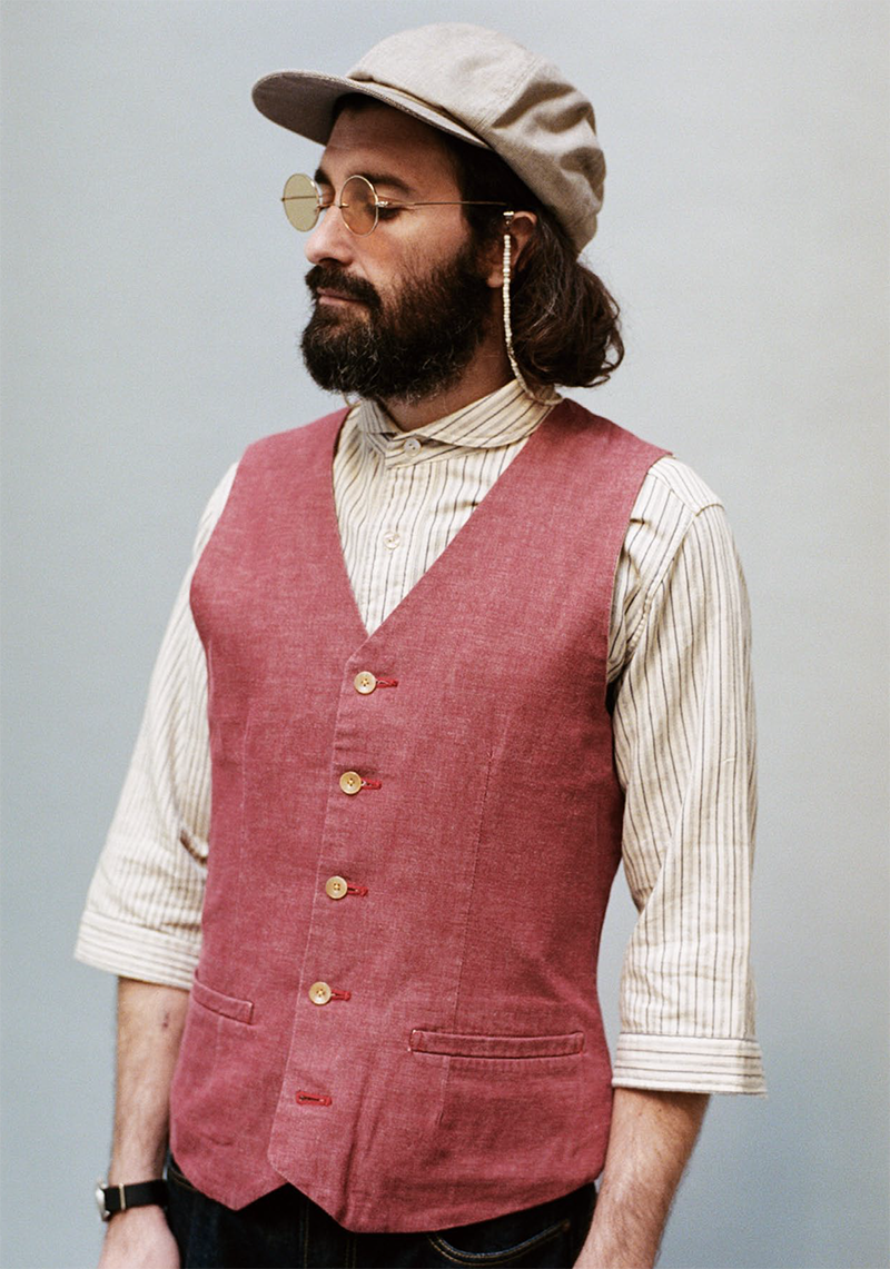 インディゴストライプの生地で製作した柔らかな雰囲気を持ったラウンドカラーのシャツ。クラシカルな長袖のワークシャツの雰囲気をそのままに7分丈に仕上げた袖丈は、半袖シャツに比べると大人びて上品なイメージを与えます。細やかな運針ピッチ、丸みを帯びたポケットデザインと襟型、天然の貝をくり抜いて製作するシェルボタン、首元のハンガーループ等、細部まで作り込みました。一般的には少し抵抗がある半端丈のシャツですが、夏でも大人の雰囲気を持ったシャツとして着用出来る、素晴らしいアイテムです。一度、着用して見てください、7分丈のシャツの魅力に取り付かれますよ。
