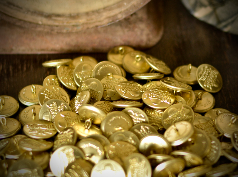 ヴィンテージ市場で人気のあるディティールのひとつ「チェンジボタン」1930年代頃までのウェアに見る事が出来るボタンで、当時のミリタリー関係や鉄道員の制服などでよく使用されておりました。輝きがゴールドと良く似ている事から、真鍮が頻繁に使われ、poorman's gold”(貧者の金)と呼ぶ事もあります。当時の雰囲気を大切にして、表・裏面両方を真鍮仕様にして製作したオルゲイユオリジナルチェンジボタン。今年の秋物のジャケットでお見せ出来そうです。